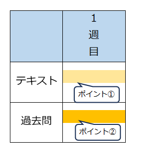 自分の経験から、勉強時間を1科目1週間目安にスケジュールを作成しました。