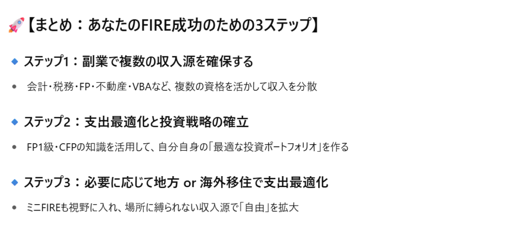 資格を「使えるスキル」に変えていくことが、FIREへ向けた一つの手段になるかもしれません。